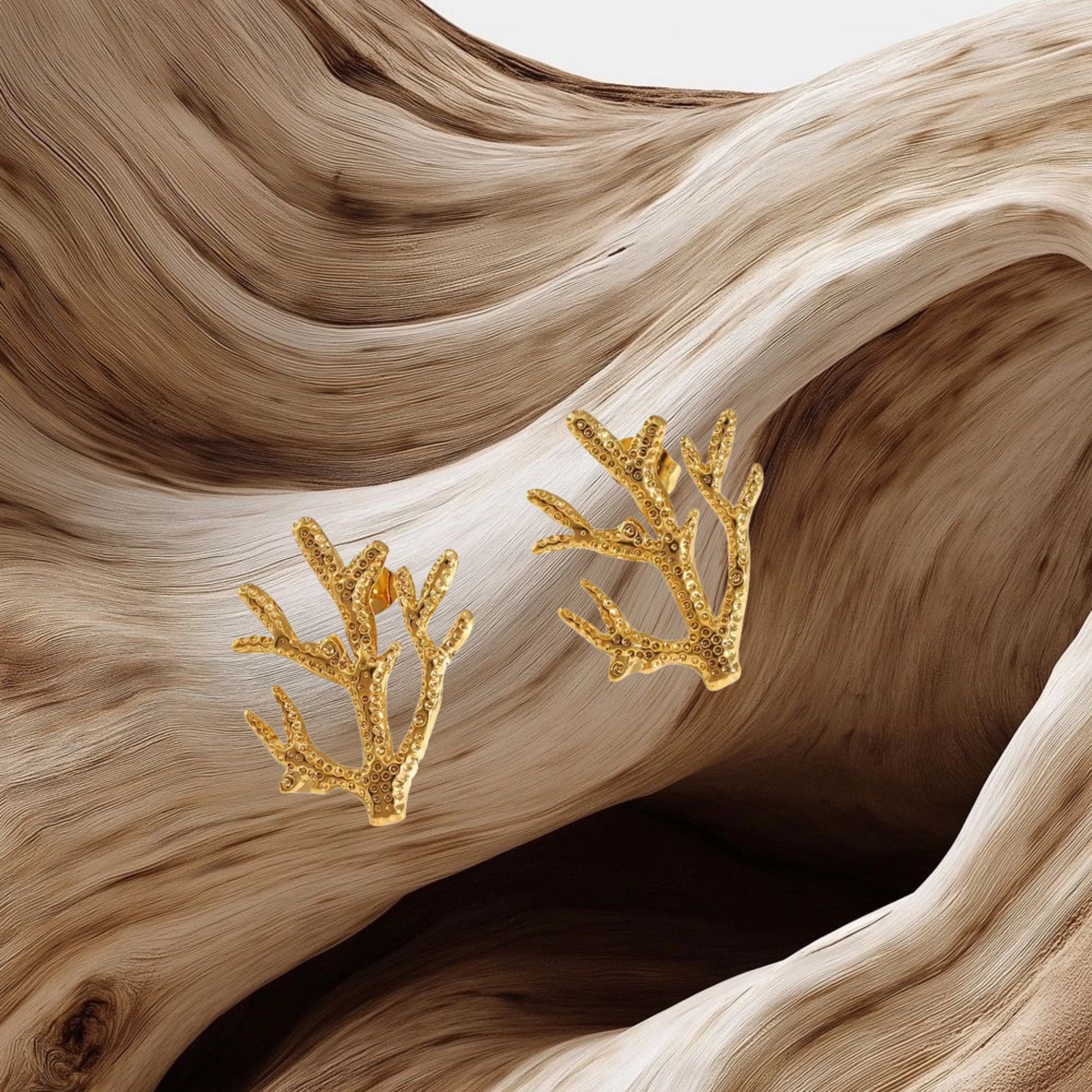 18K gold-plated earrings in a delicate leaf-inspired design, perfect for effortless summer style.